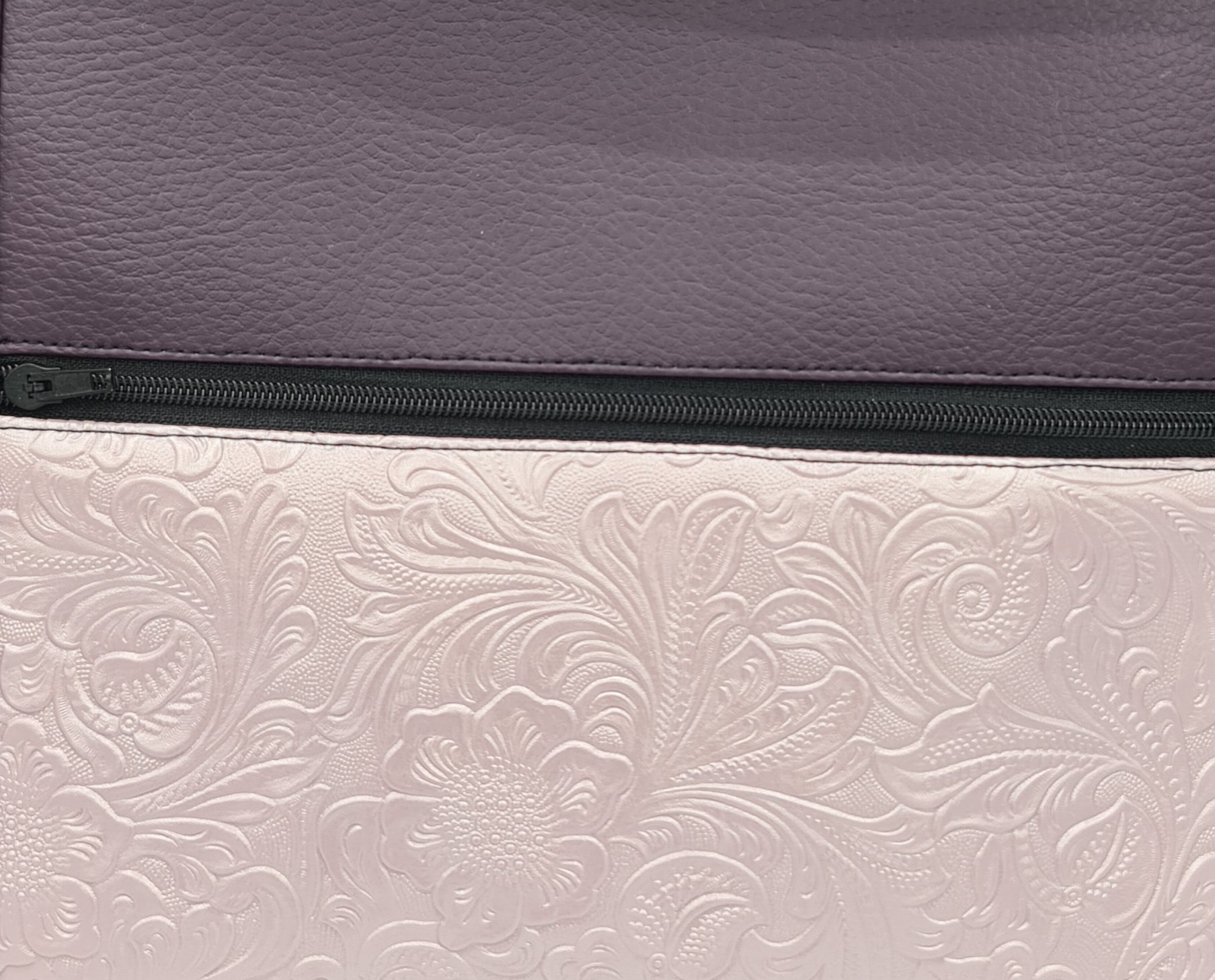 Sie ist außen aus auberginefarbenem Kunstleder gefertigt, so ist sie robust, abwischbar und wasserabweisend. Als Eyecatcher hat sie vorne einen tollen Ausschnitt aus zarten rosa Blütenranken. Das Innenfutter besteht aus auberginefarbendem Oxfordstoff. Zudem bringt sie ein inneliegendes Schlüsselband mit, damit du in Zukunft nicht mehr lange suchen musst.