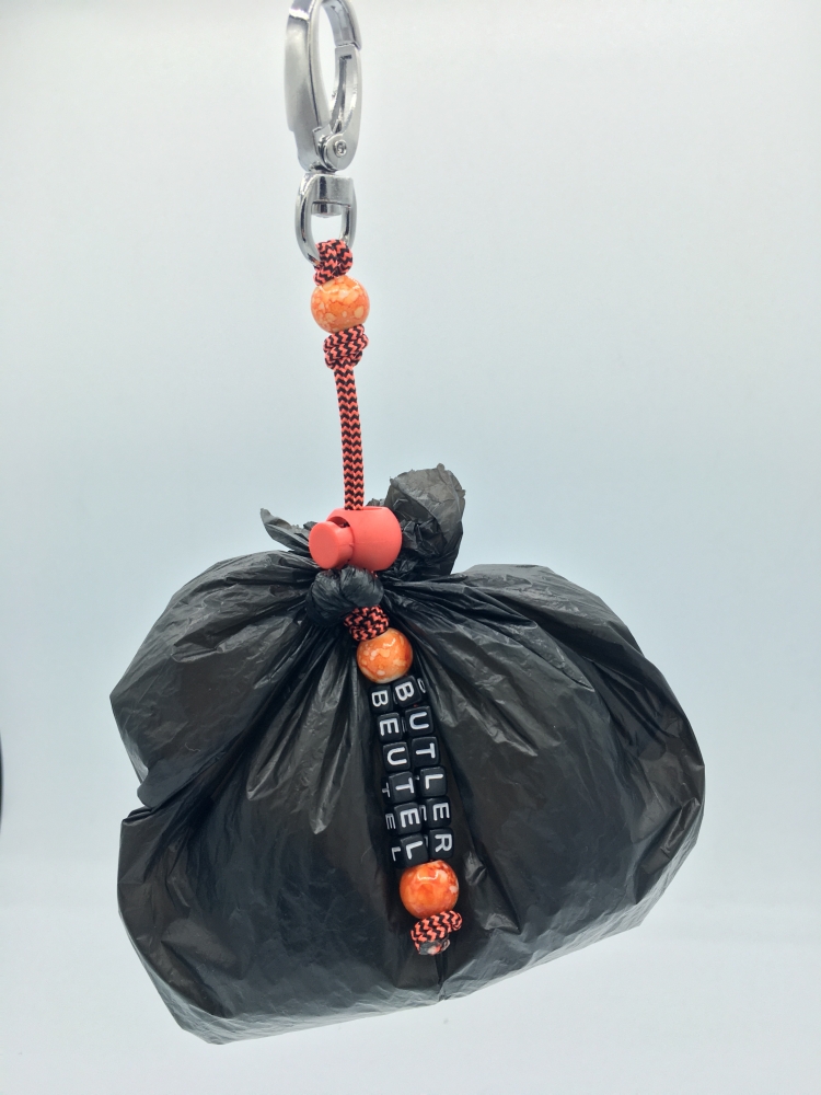 Ab sofort nicht mehr, denn du hast jetzt einen Kotbeutelhalter, den Beutel-Butler, der die vollen Kotbeutel für dich trägt.