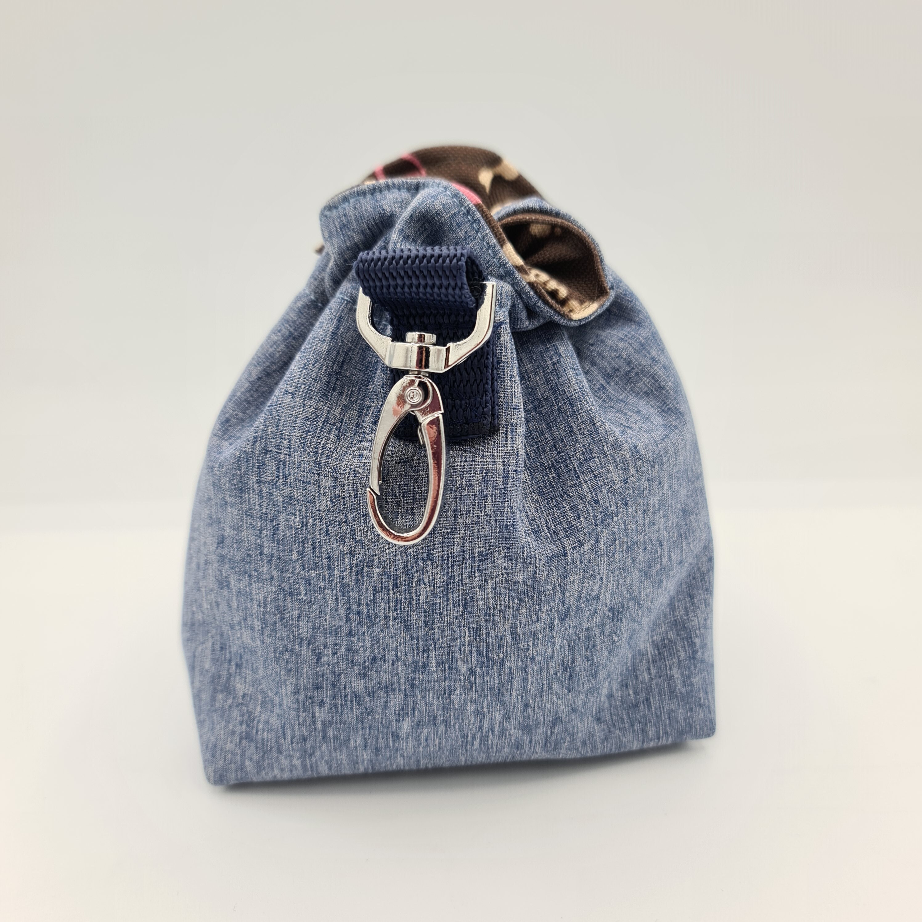 Mobile Preview: Futterbeutel mit integriertem Kotbeutelspender in Jeans Blau und Beige