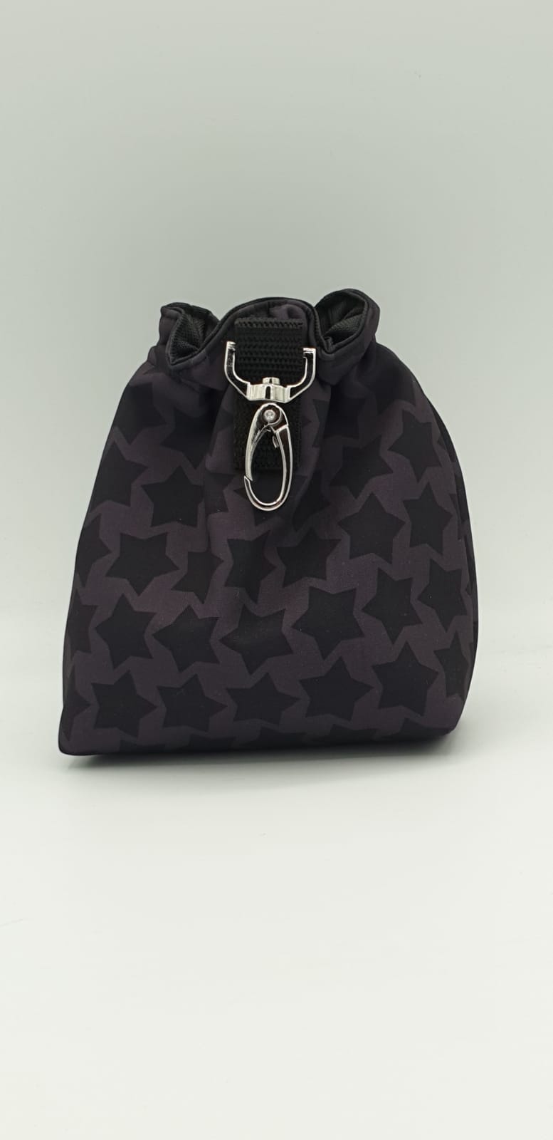 Preview: Futterbeutel mit integriertem Kotbeutelspender in schwarz / anthrazit mit Sternen