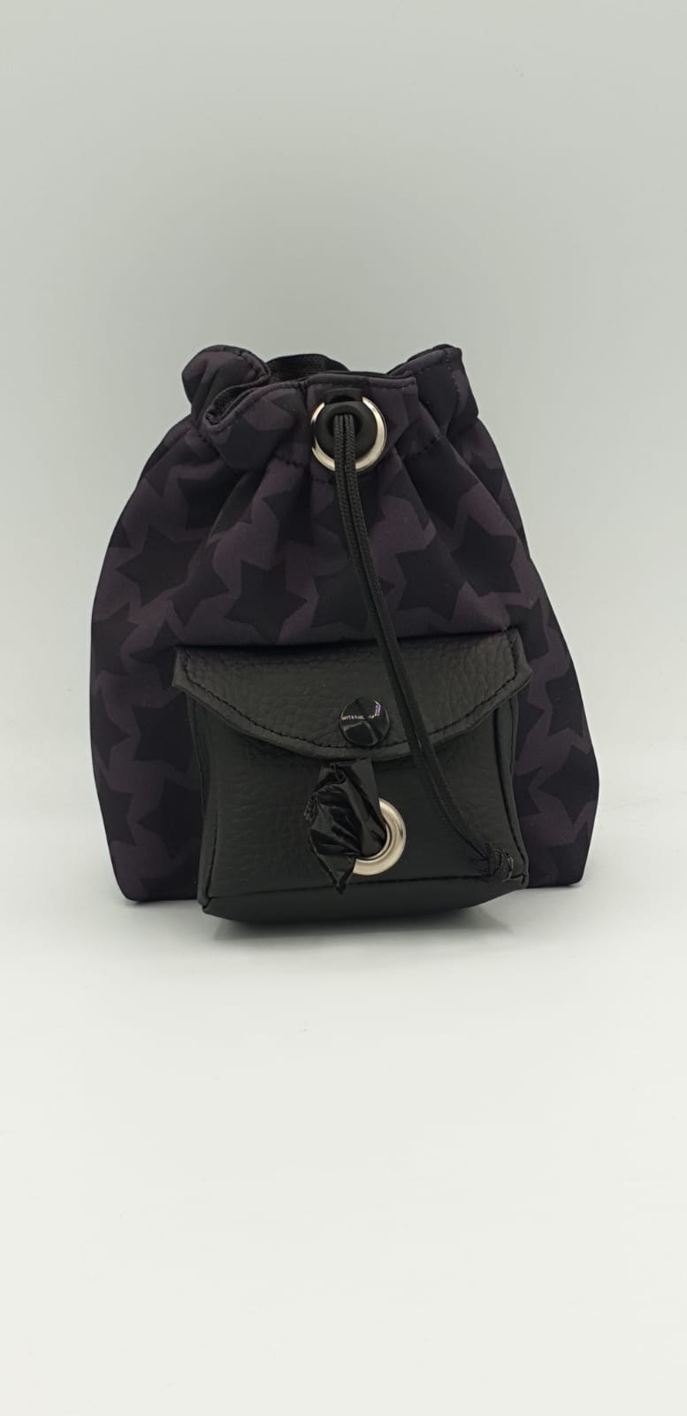 Futterbeutel mit integriertem Kotbeutelspender in schwarz / anthrazit mit Sternen