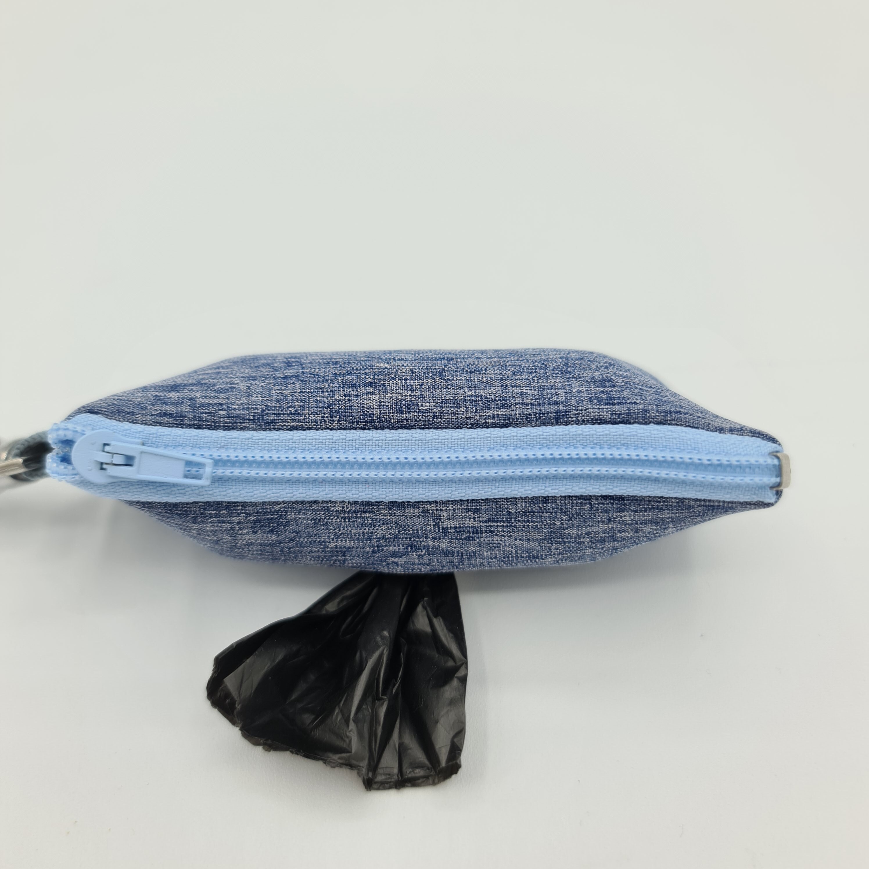 Der Spender ist Jeansblau mit hellblauem Reißverschluss.