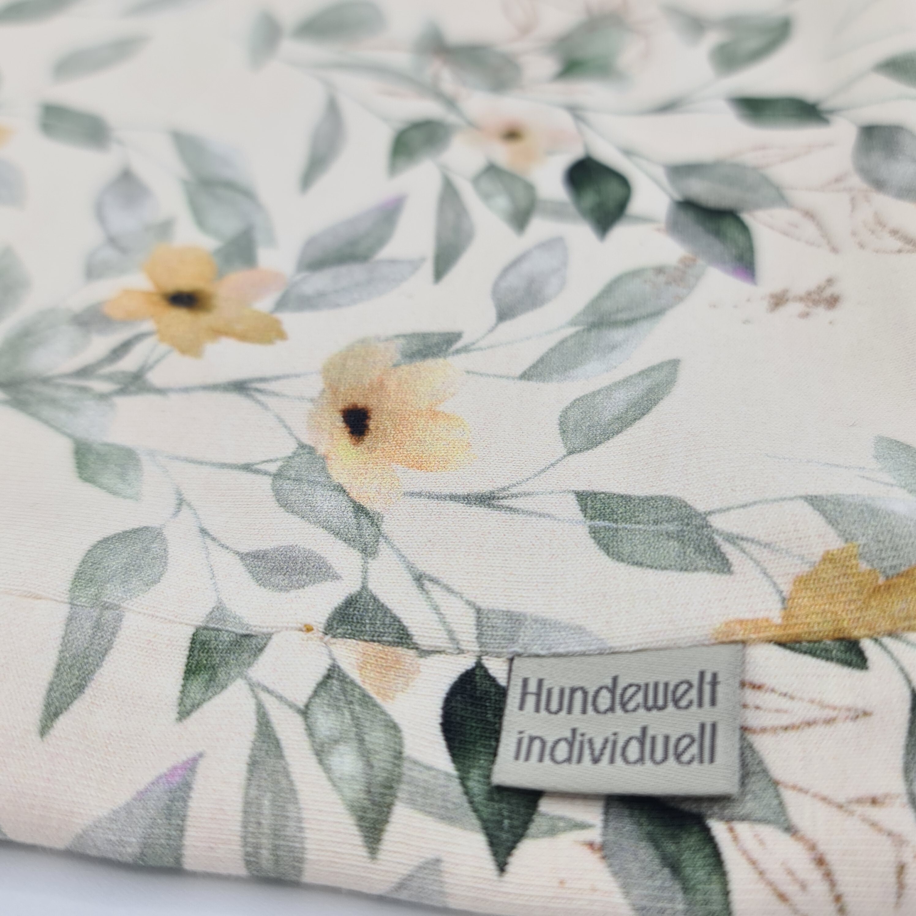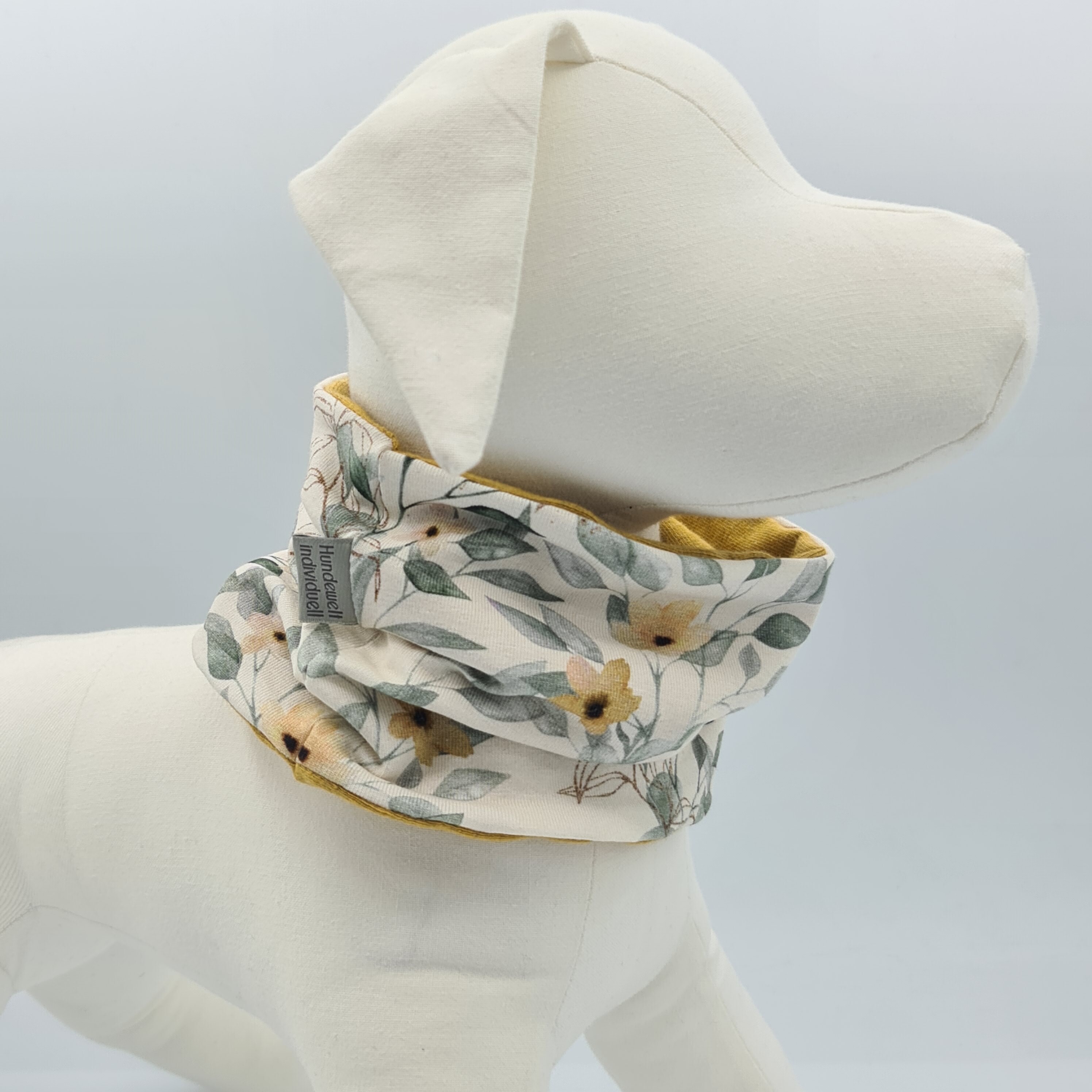 Loop für Hunde in senfgelb - weiß mit Blättern