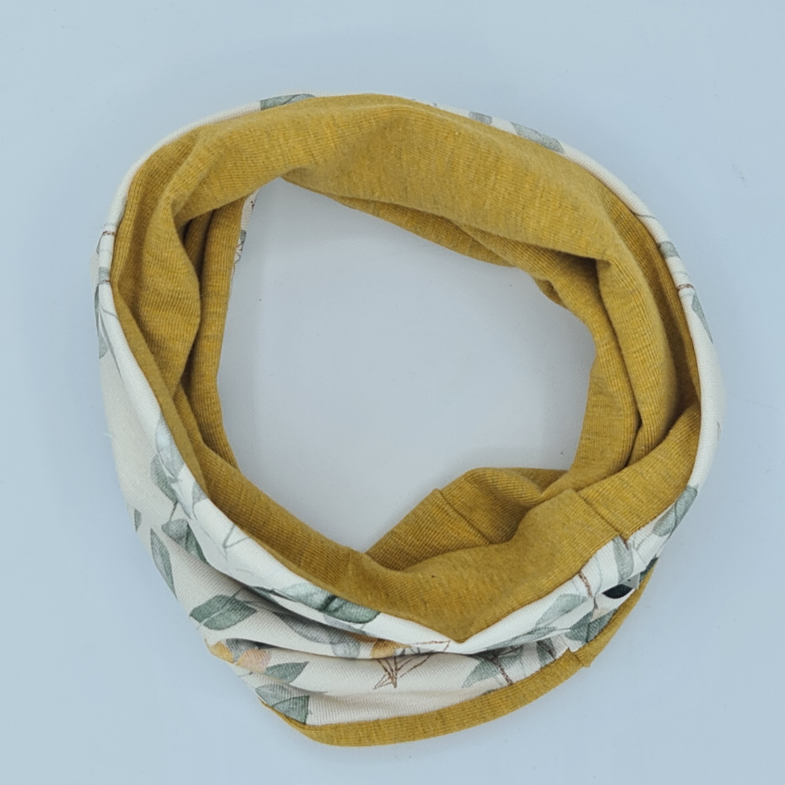 Preview: Loop für Hunde in senfgelb - weiß mit Blättern