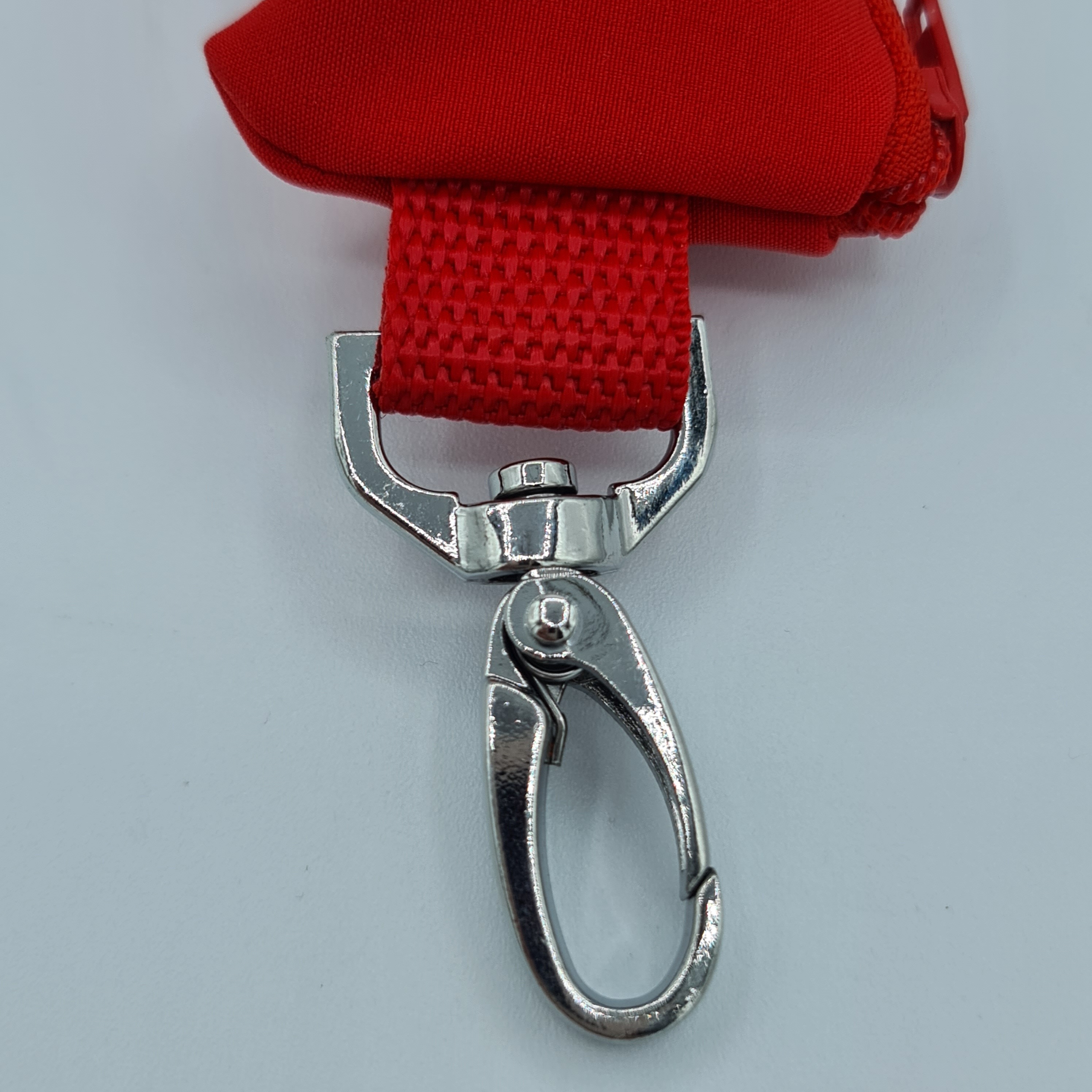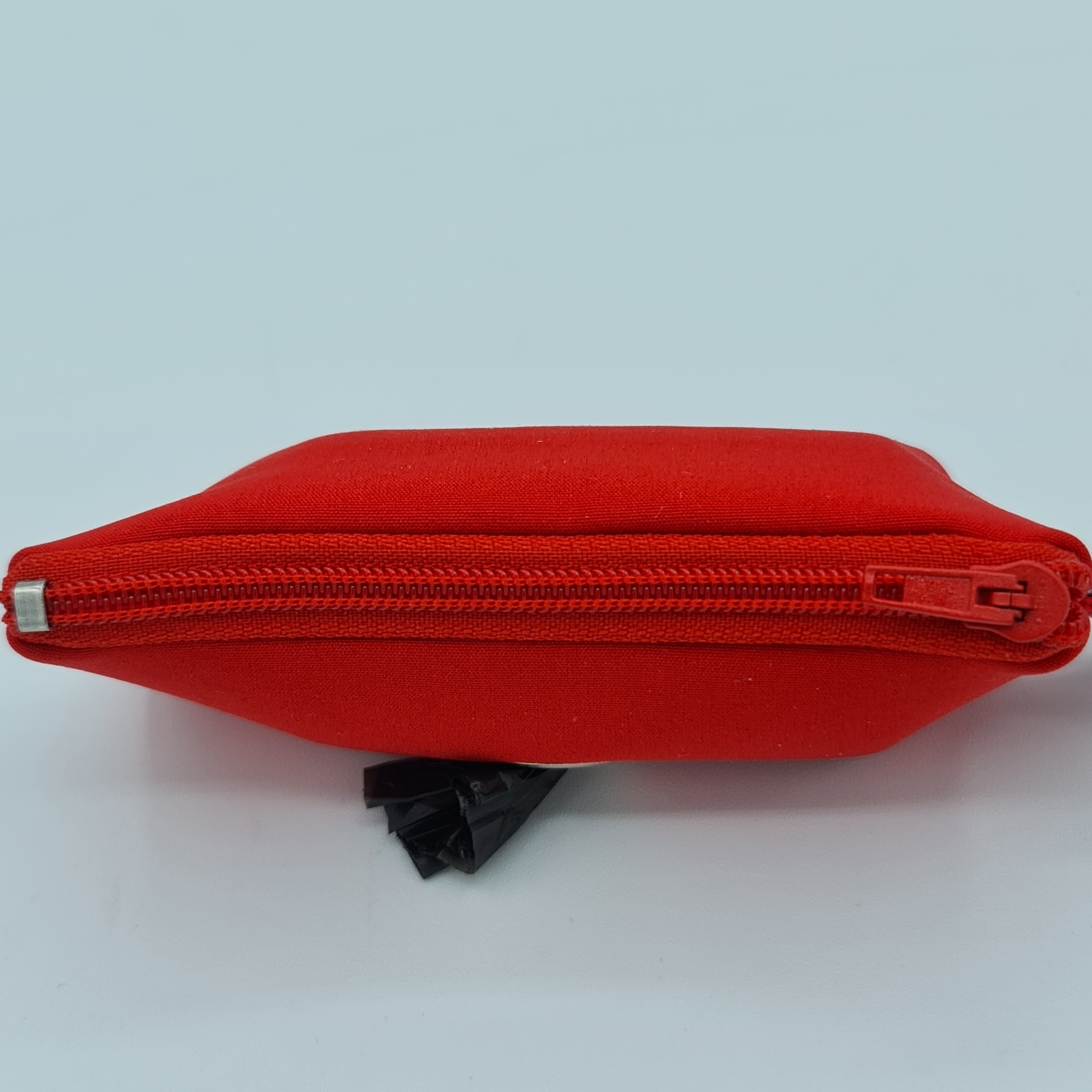 Der Spender ist in schönem Rot mit passendem Reißverschluss.